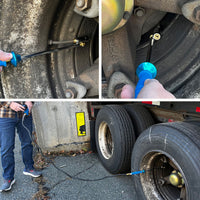Two-jaw locking design with a patented remote actuator. Extended reach to securely inflate duals. Easily disconnect with the actuator. No need to reach in to disconnect.